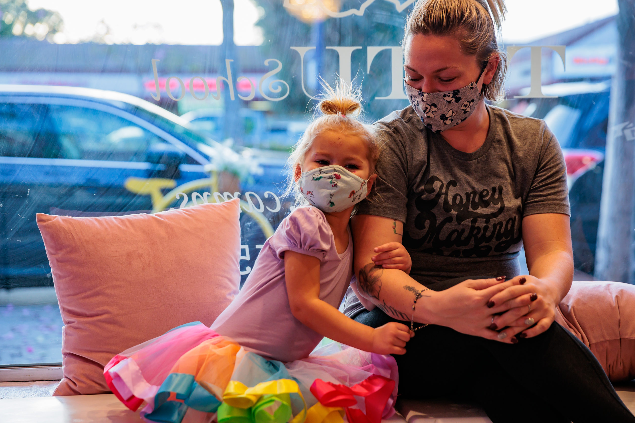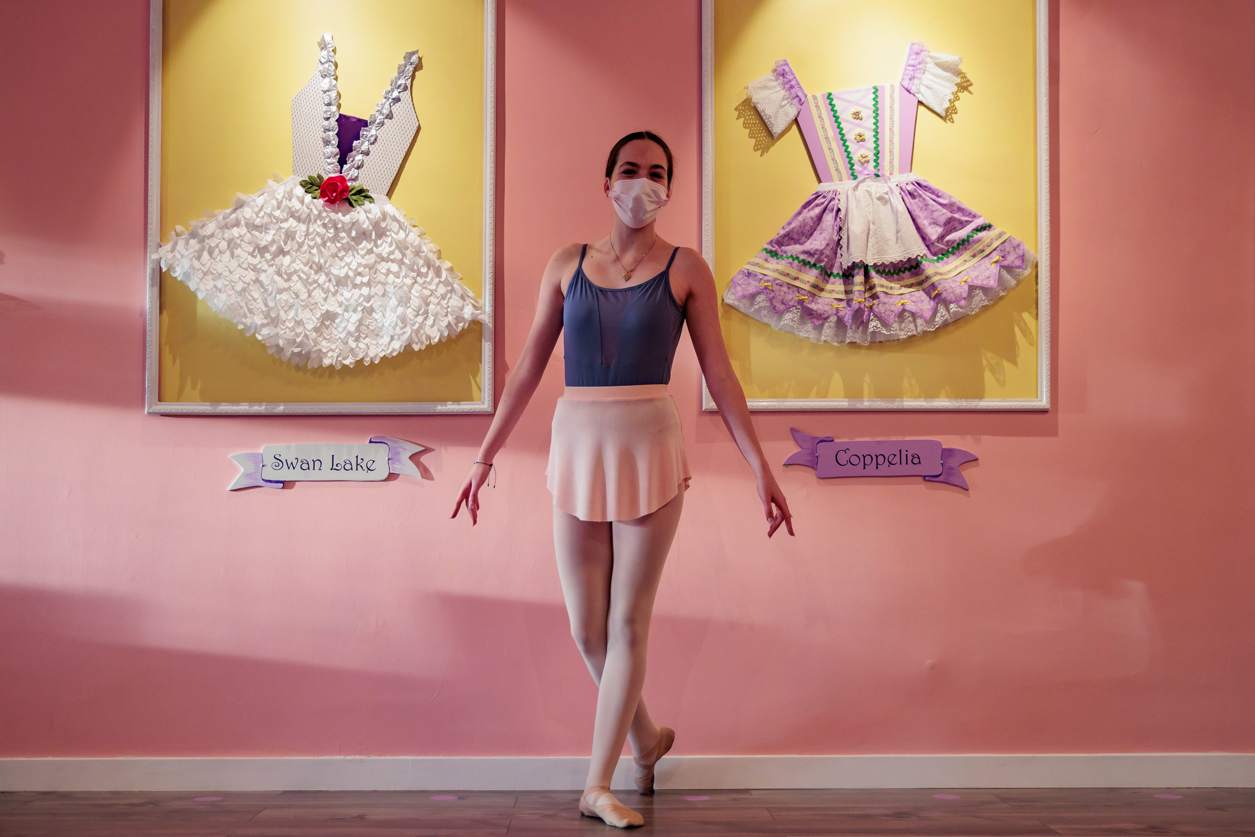 Intent on creating a whimsical world for children, the pastel walls of the studio are adorned with elaborate tutus signifying classic ballet stories like The Nutcracker and Sleeping Beauty.